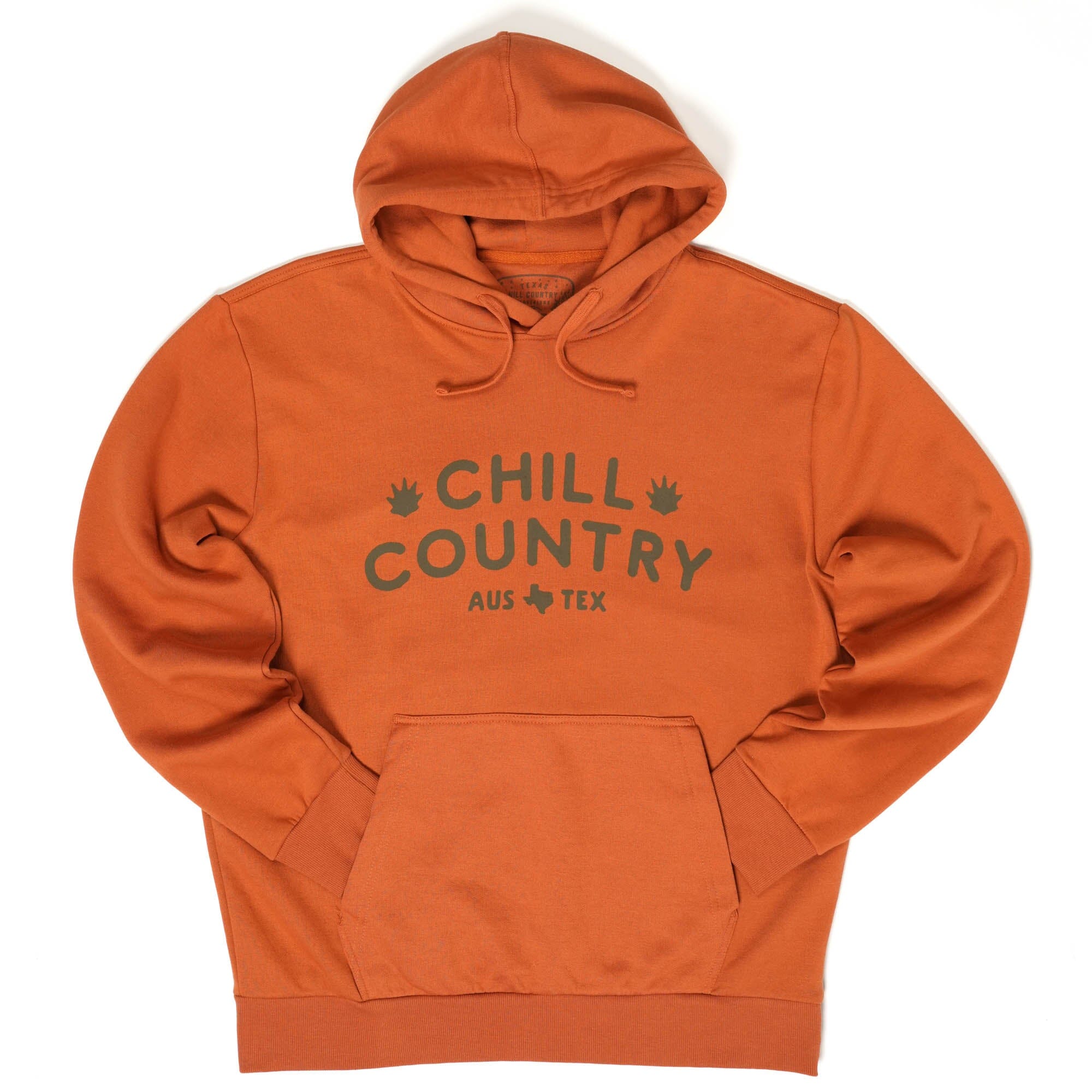 Crafted from a soft poly-cotton fleece with a cozy brushed interior. Designed with ribbed cuffs and hem, and includes screen-printed Texas-inspired artwork designed at Chill Country HQ in Austin, Texas.